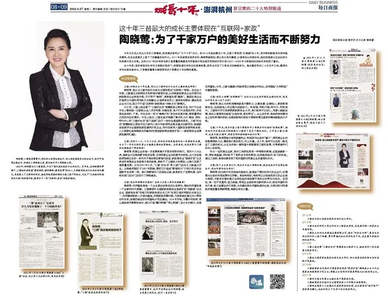 近日,《每日商報(bào)》推出“喜迎黨的二十大特別報(bào)道”,三替集團(tuán)黨委書記、董事長陶曉鶯榮登“成長十年”整版報(bào)道,以下是報(bào)道原文及采訪: