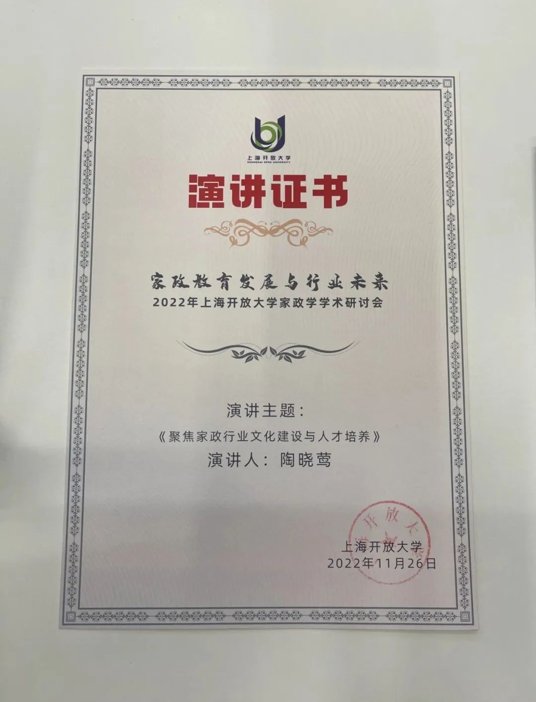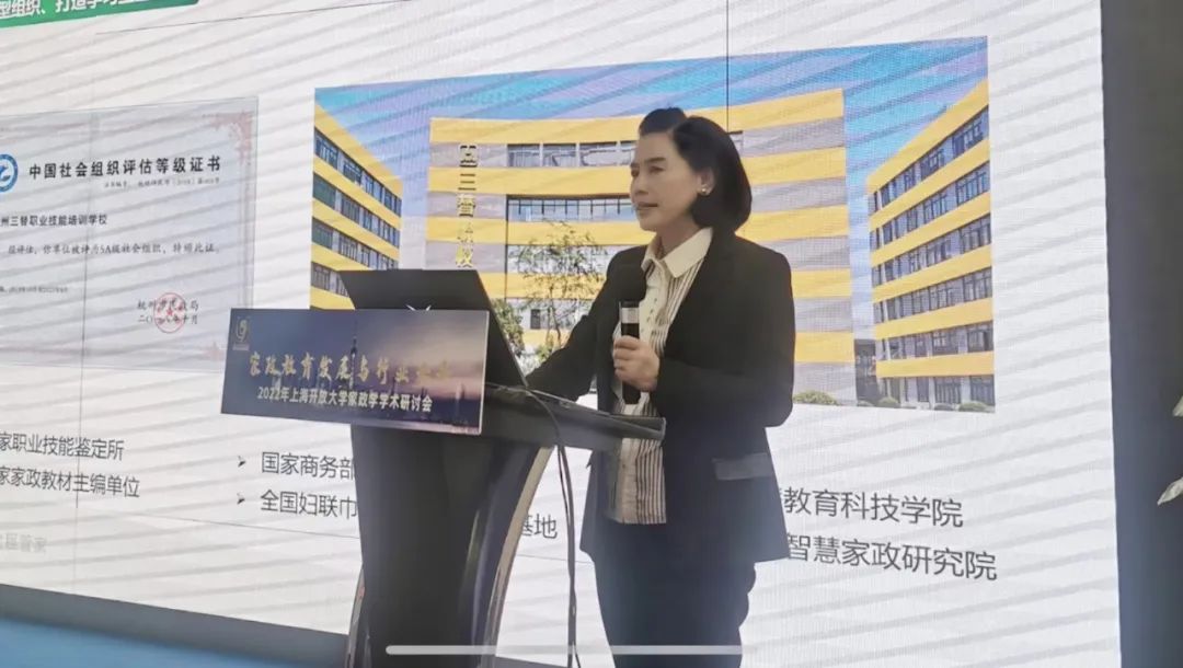 11月26日-27日,“家政教育發(fā)展與行業(yè)未來”學術(shù)研討會在上海順利舉行。為貫徹落實習總書記關(guān)于家政服務業(yè)發(fā)展的重要指示精神,進一步促進家政行業(yè)創(chuàng)新發(fā)展,提高家政學學術(shù)水平,上海開放大學、上海市家庭服務業(yè)行業(yè)協(xié)會聯(lián)合主辦本次研討會。浙江省家庭服務業(yè)協(xié)會會長、三替集團董事長陶曉鶯應邀出席本次會議并發(fā)表《聚焦家政行業(yè)文化建設(shè)與人才培養(yǎng)》主題演講。浙江省家協(xié)會長、三替集團董事長陶曉鶯出席會議