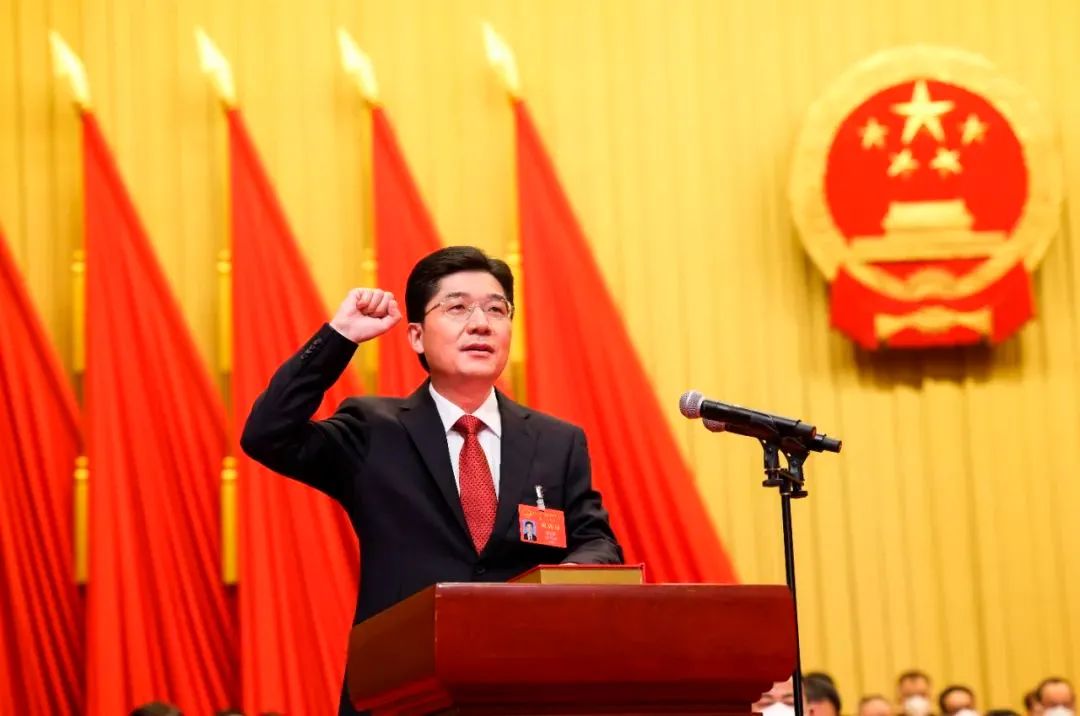 杭州市人民政府市長姚高員在大會主會場進行憲法宣誓