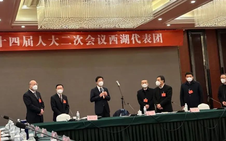 杭州市人民政府市長姚高員走訪西湖代表團并發表講話