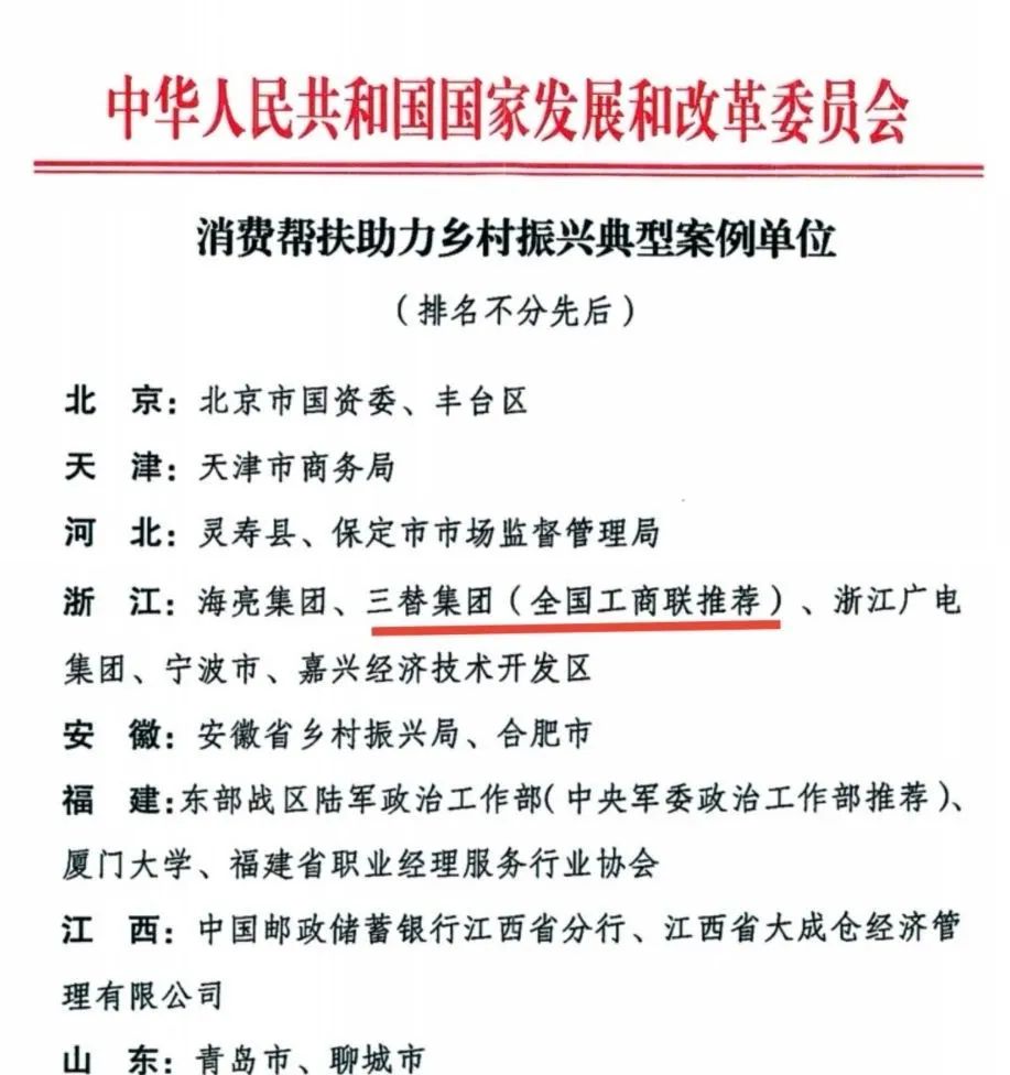 三替榮獲了國家發改委“幫扶助力鄉村振興實現共同富裕典型案例”