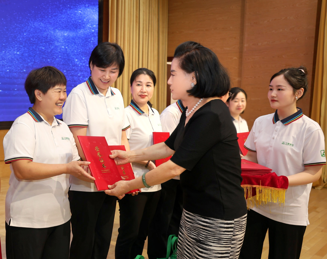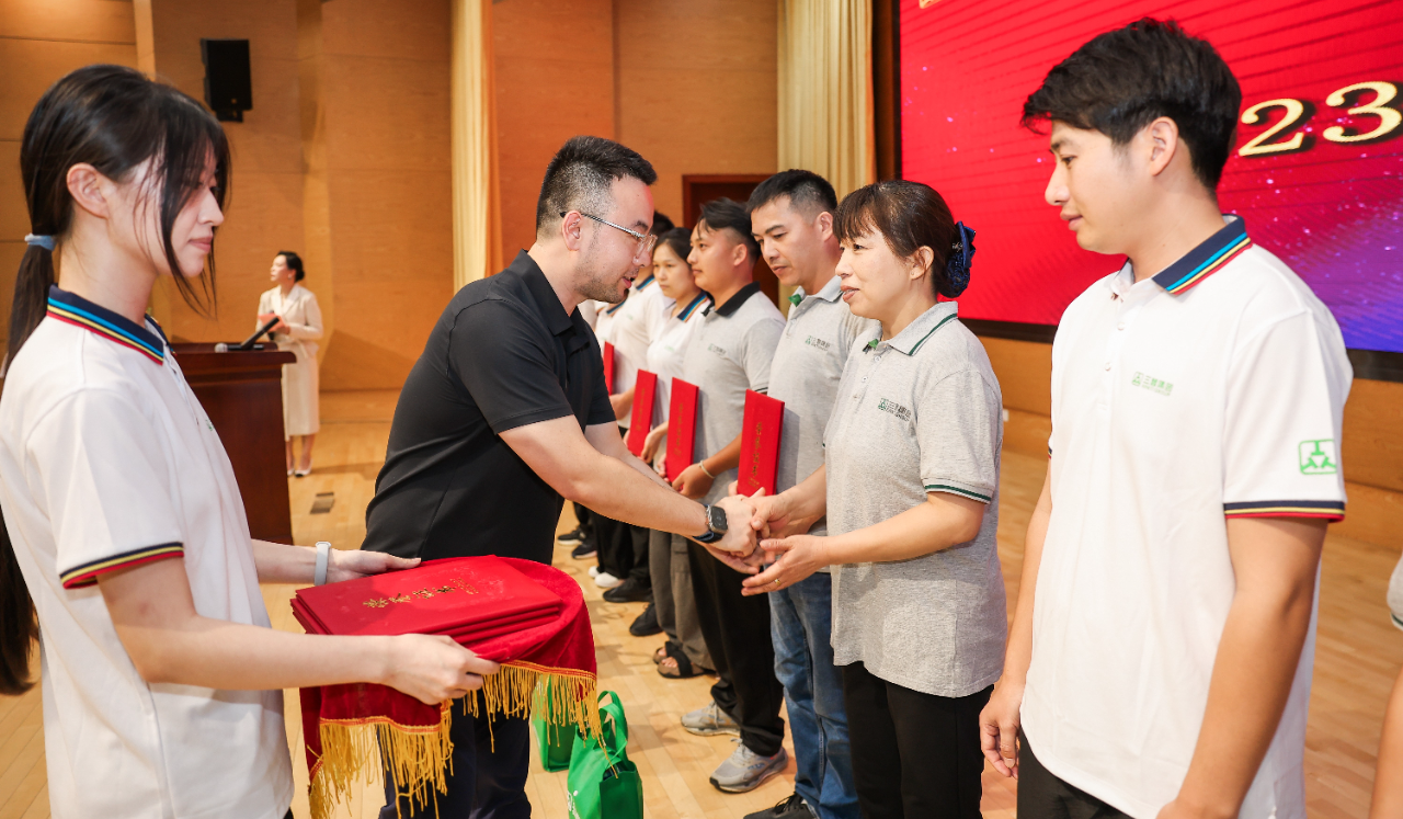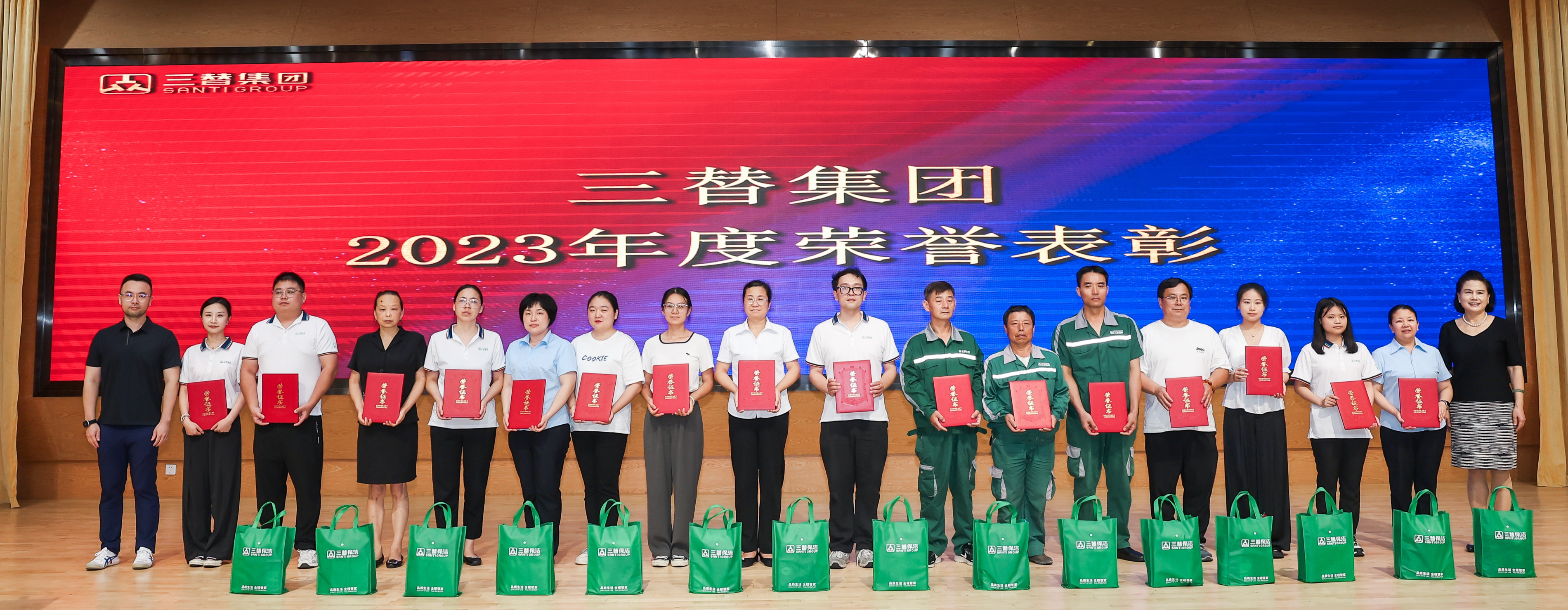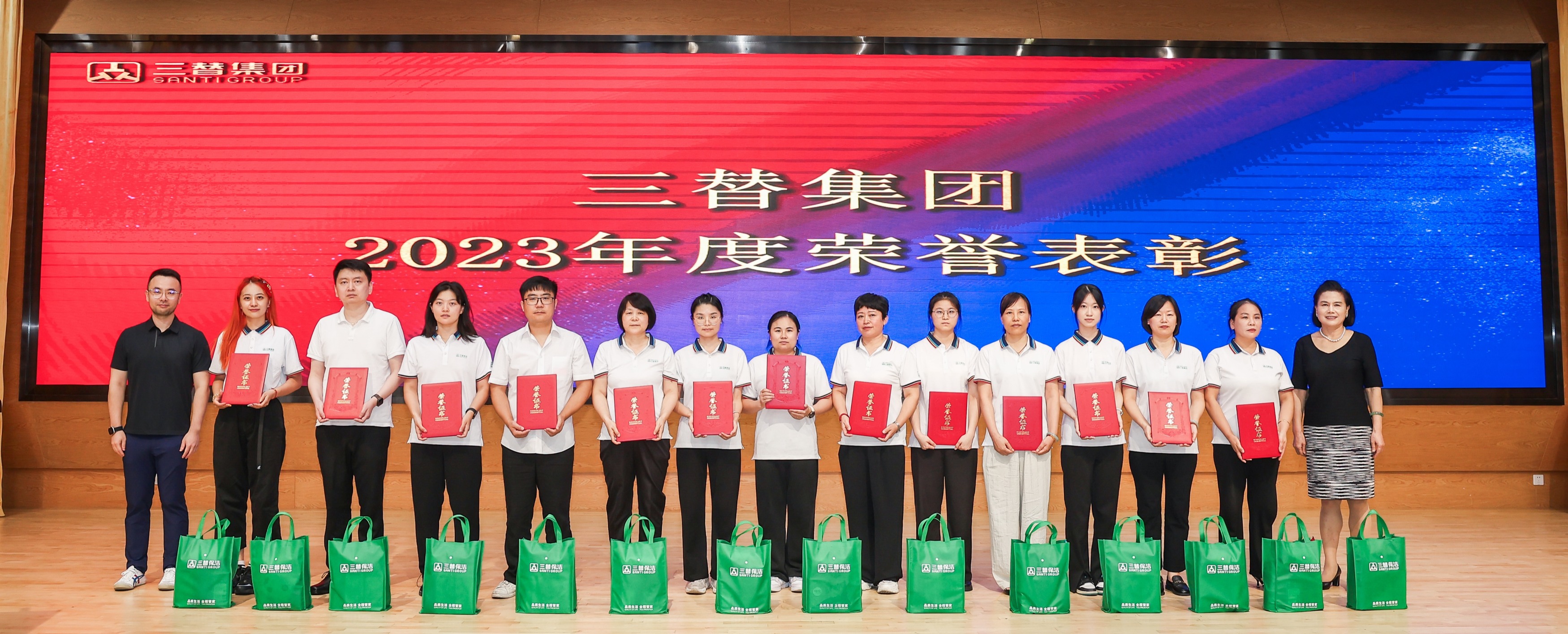 隨后,大會對優(yōu)秀員工進行了表彰。三替集團董事長陶曉鶯、總經(jīng)理黃恩澤等集團領導為獲獎員工頒獎。